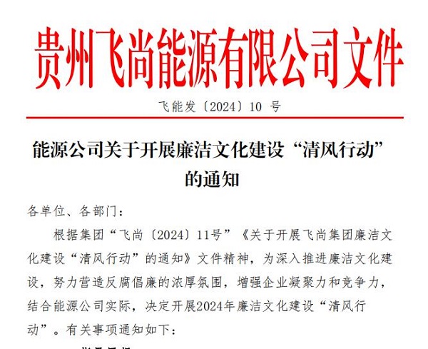 4月初,飞尚团体宣布《对于展开清廉文明扶植“清风步履”的告诉》。勾当展开以来,团体各成员企业主动到场,按勾当请求推动相干任务,成立健全清廉任务轨制,营建清廉文明稠密空气,为“清风步履”的深切展开打下了坚固底子。
